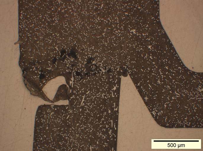 Plastographic section through a laser beam welded connection of two fiber-reinforced thermoplastic materials